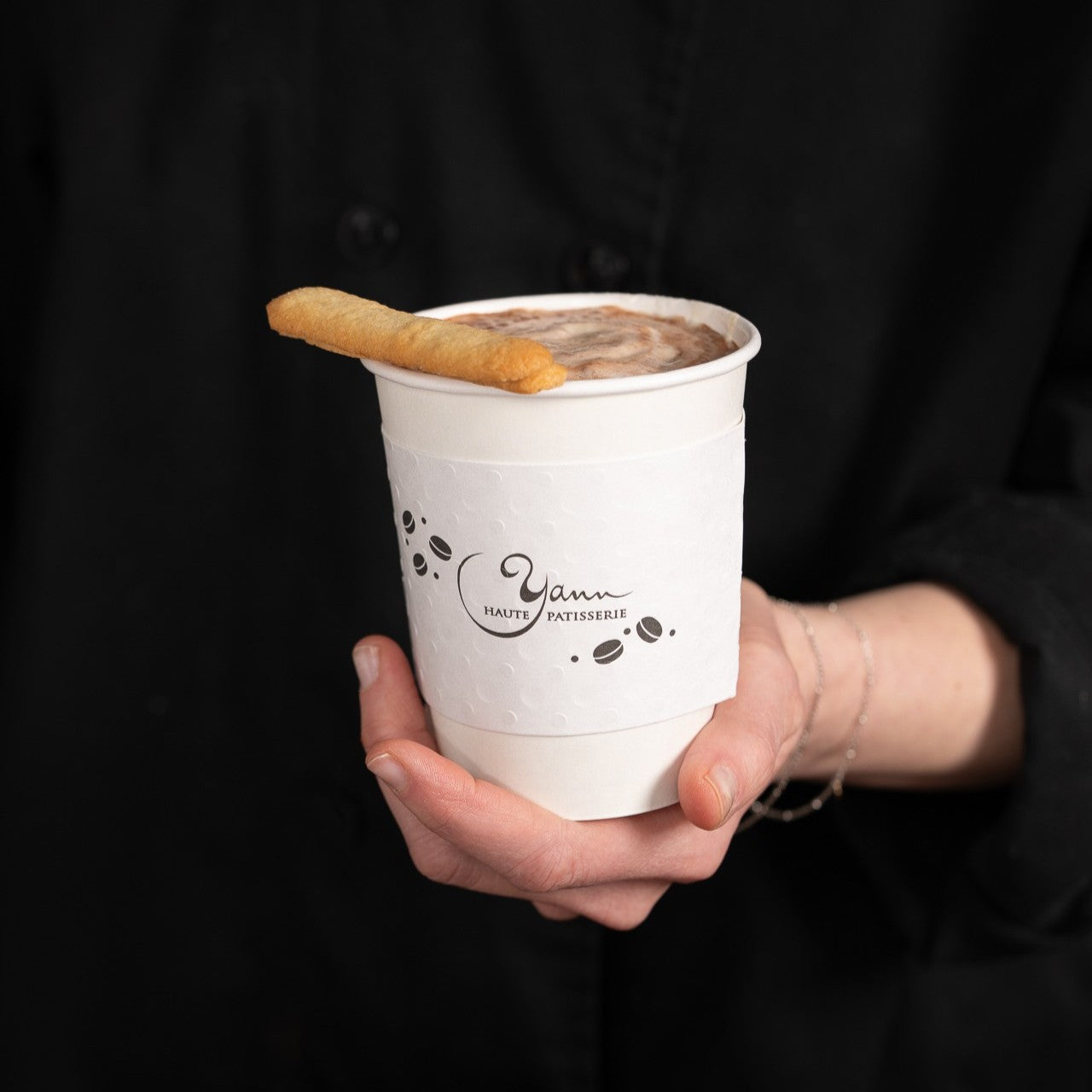 Imagine your chocolate Chinook coming to melt Calgary's ice cream! Enjoy a homemade organic vanilla bean gelato scoop with a rich 'grand cru' Valrhona Alpaco hot chocolate poured on top! Of course there is a little cookie to go with your drink: a cat's tongue wafer!